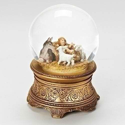 Roman, MUS 6.75"BABE W/ANIMALS 100MM GLITTR DOME GLD BASE FONTANINI