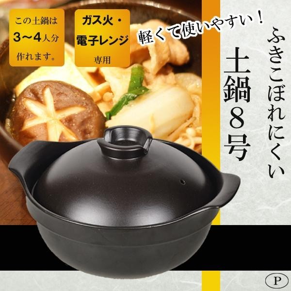 軽いので持ちやすく、洗いやすい土鍋です。鍋のふちが高いので、ふきこぼれにくい! 製造国:中国 素材・材質:陶器 商品サイズ:(約)幅270×奥行270×高さ120mm 仕様:食洗機・乾燥機不可ガス火・電子レンジ専用 ※メーカー直送品 ご注文後3~4営業日後の出荷となります