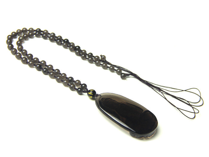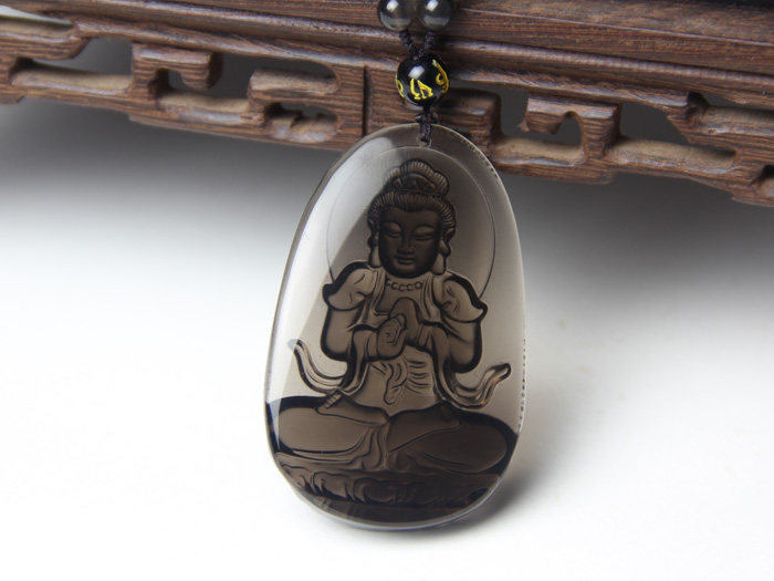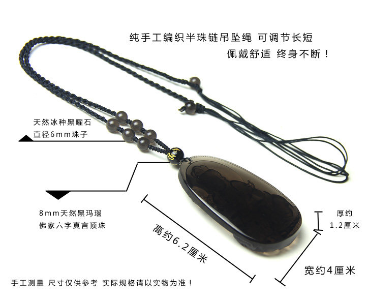 开光天然冰种黑曜石本命佛 大日如来菩萨生肖羊猴守护神吊坠