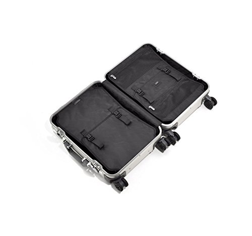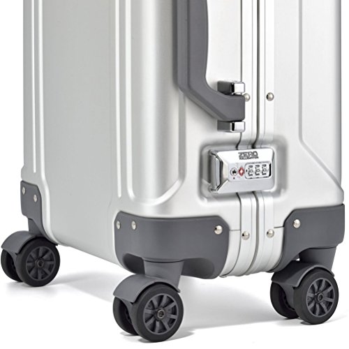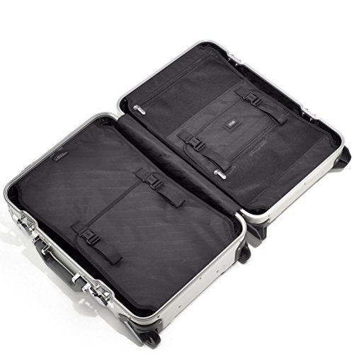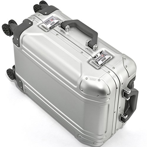 Product Description The Geo Aluminum 3.0 Carry-On Spinner Luggage has a flexible interior and two TSA-Accepted drawbolt latches for security. Utilizes premium Anodized Aluminum that is as strong as steel but only one-fourth the weight. Innovative and unique Double-Rib Design provides additional strength and durability as well as optimum protection of its contents. Designed to securely close using two TSA-Accepted Combination Locks that are integrated into the Draw-bolt Latches. Seals airtight with the addition of a Neoprene Gasket Seal around the opening's perimeter. The Spinner Wheels provide convenient and controlled 'by-your-side' mobility for easy traveling. The intuitive 3-stage dual-button handle system allows for quicker release for both left and right-handed travelers. Our superior Piano Hinge is used to keep the shells of each case in alignment and adds additional strength and integrity to the seal. The Interior is divided into two compartments with flat panels in place to hold clothes securely and discreetly. Our Signature Lining is stain-resistant and non-abrasive to clothes. 0