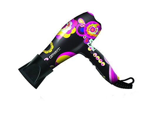 amika’s Mighty Mini Ionic Dryer is a powerful 1000 Watt, dual voltage tool that harnesses the latest technology and innovative materials to deliver results. Tourmaline and ceramic components emit far-infrared heat and negative ions, eliminating frizz and delivering smooth style. The result is beautiful, shiny and silky hair. To create extra volume, turn head upside down while drying with the finger diffuser attachment. Position the airflow toward the roots for maximum lift. When hair is done drying, toss head back and gently brush hair into place. The included finger diffuser delivers excellent results on curly, permed or fine hair.Feature