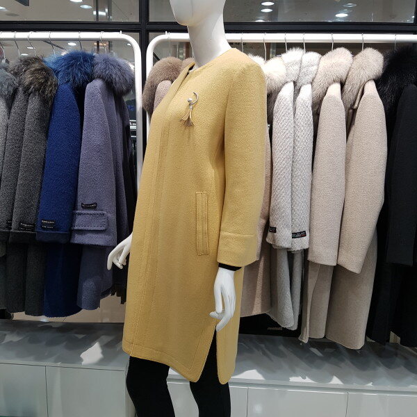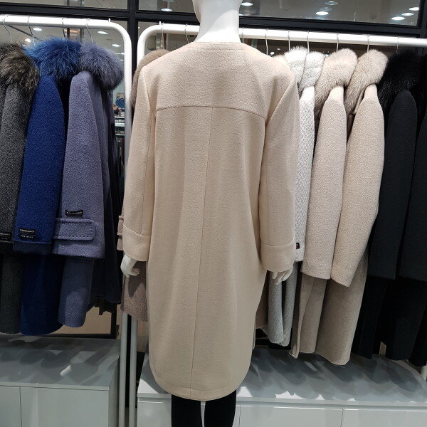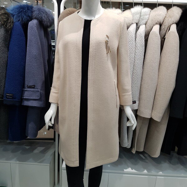 라운드넥의 모혼방 간절기 코트로 2018 년 봄 신상품입니다태슬브롯치가 부착된 7부 길이의 코트로서 어떤 아이템과도 잘어울리는 상품입니다 소매는 7부 판타롱핏입니다