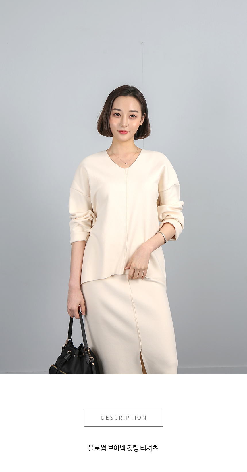앞중심선의 절개로 우아한 느낌의 앞,뒤 브이넥에 둥글게 떨어지는 핏이 단아한 티셔츠에요 코튼, 폴리 혼방으로 톡톡한 소재가 핏을 잘 잡아주며 너무 얇지도 두껍지도 않은 적당한 두께감이 간절기 단독으로 입기 좋은 아이템이에요 심플하면서도 핏이 예뻐 입었을때 빛이 나며 특별한날 코디하기에도 좋답니다 색상은 아이보리, 핑크, 블랙 사이즈는 FREE 44~66 ▼ 관련상품 : 블로썸 히든밴딩 트임 스커트