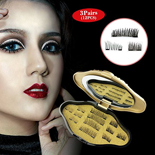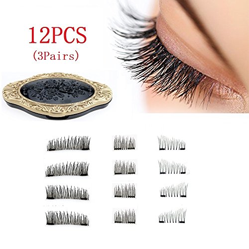 Magnet Eyelashes-Dual Magnetic False Eyelashes NO GLUE 3D Fiber Reusable Best Fake Lashes Extension for Natural Look(3 Pair/12 Pieces)