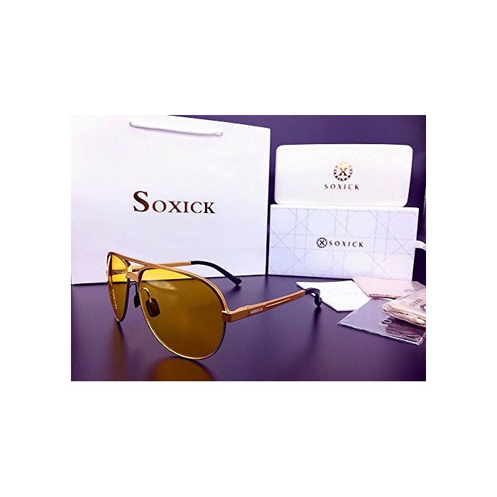 SOXICK Soxick HD 야간 운전용 썬글라스 편광 렌즈 안경 밤낚시 나이트 드라이빙 워킹용 드라이브 우천방 현 효과 스포츠 크 UV컷 메탈 프레임 하프 림 맨즈 레이디스 남녀 겸용