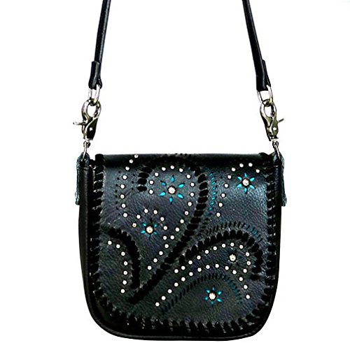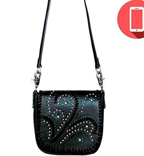 Studio : Western Fashion Publisher : Western Fashion Binding : Apparel Product Description Montana West Studs Swirls, All Leather Crossbody w/ Built-in Phone Charger- Black Product Code: RLC-L095P PHONE CHARGING HANDBAG ONE RECHARGEABLE POWER SOURCE TO CHARGE ALL YOUR DEVICES Each handbag contain a removable, rechargeable and completely portable USB charging power bank. Charger is compatible with IPHONE 5,6,6P,7,7P ,ANDROID, GALAXY and Smartphone products. ? Flap with magnetic button closure ? Studs and Swirl Design ? Colorful unlay accents ? Front slide pocket ? Multiple card slots with key ring inside the bag ? A zippered pocket on the back ? A detachable adjustable leather strap (48" Total- 24" Drop) 8 x 1.75 x 6.5 COLOR VARIATIONS ARE NATURAL WITH GENUINE LEATHER 0