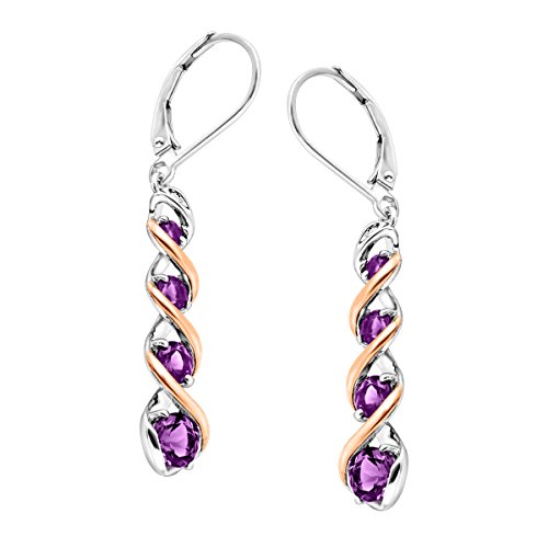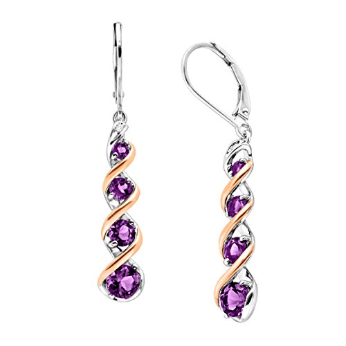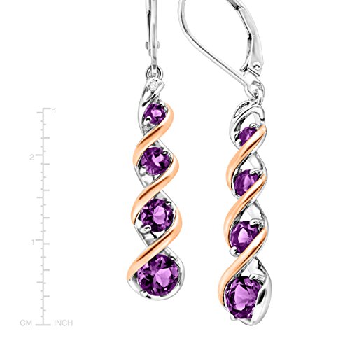 These cascading twist earrings are sure to liven up any outfit. Featuring 1 7/8 ct of round-cut natural lighter-colored amethyst with a round-cut diamond accent in each earring, these pieces are set in sterling silver with hints of 14K rose gold throughout and are finished with lever backs. Pieces measure 1 3/4 by 1/4 inches.Feature