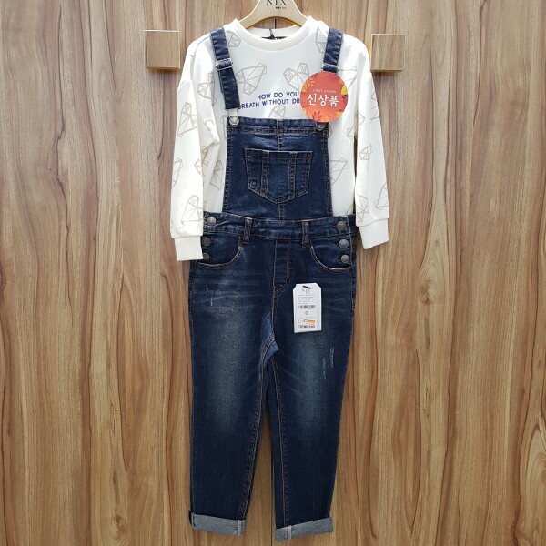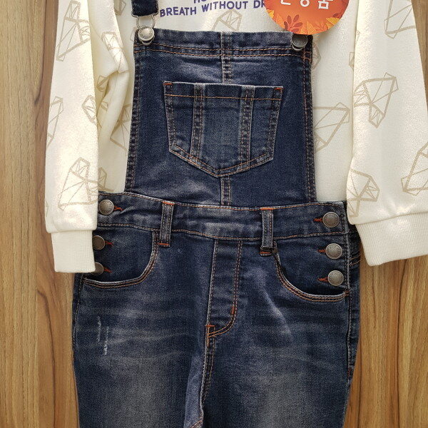 다크한 톤의 바닥컬러에 은은한 브러쉬가 돋보이는 데님. 롤업시 보이는 포인트 실컬러가 포인트이며 남아,여아 구분없이 어울리는 스타일