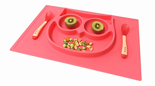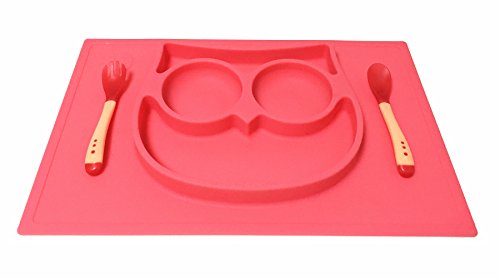 -. Feature : EPHome one-piece silicone placemat and tray is designed to serve your toddlers, babies and little kids, while catching messes your little ones made when feeding themselves, mat size 14.57''*9.65'' / Made of high quality durable 100% food grade silicone, antibacterial, heat resistant protection of a range between -40 to 482 degrees Fahrenheit, safe with microwave, refrigerator, FDA certified and BPA free / Superior silicone mat, natural electrostatic adherence, does not slide around, the built-in plate&bowl make it even safer from drops and spills / The cute owl shaped bowl and vivid color will make the mealtime a big fun, extremely suitable for picky eaters, available to be folded for storage, portable to take it out at restaurant for a hygienic meal / Super easy to clean with warm soapy water and dishwasher safe, perfect baby shower gift, Christmas gift. Order now to get the heat sensitive spoon and fork (color changing when food getting too hot over approx. 100ºF)
