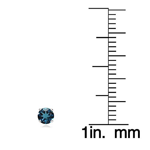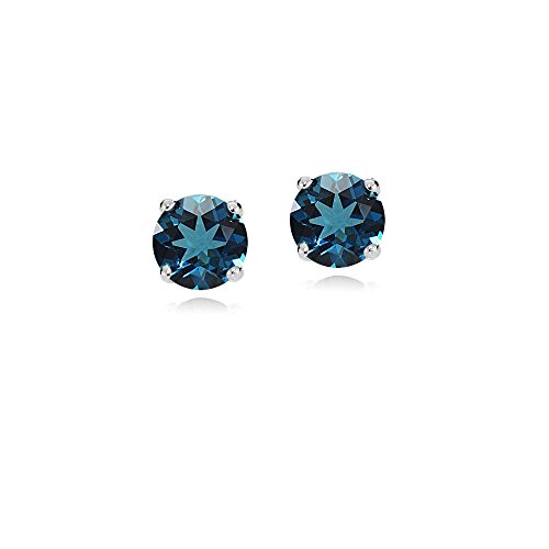 These stud earrings feature 4mm round genuine london blue topaz stones. The earrings are crafted of 14k white gold and are secured with a post and friction back.