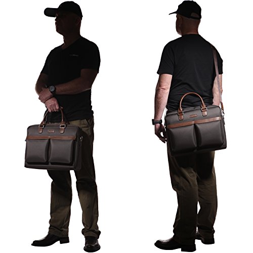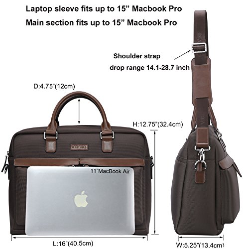 -. Binding : Paperback -. Brand : Banuce -. ClothingSize : Onesize -. Color : Dark Brown -. Department : mens -. EAN : 0602638609596 -. Feature : Waterproof oxford fabric with PU leather / Top zip clousre, Top handle with 4.5 inch drop / Detachable and adjustable shoulder strap with pad / Dimension: 16L *5.25D *12.75H inch. / Exterior front with 2 pockets. Interior Padded laptop sleeve fits up to 15.6 inch laptop, Main section fits up to 16 inch laptop. -. Model : RTXCXBM134-DBN -. MPN : 6789183 -. PackageQuantity : 1 -. PartNumber : 6789183 -. ProductGroup : PC Accessory -. ProductTypeName : COMPUTER_COMPONENT -. Size : Onesize -. Title : Banuce Waterproof Fabric PU Leather 15.6 Laptop Briefcase Front Pocket Messenger Bag -. UPC : 602638609596