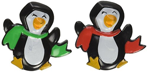 Oasis Supply - 24 Christmas Cupcake Cake Toppers plus Bonus 50 Free Fun Stickers (Penguin w/ Scarf Ring)