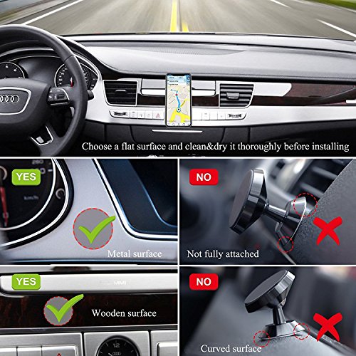 ❤ ONE SEC MOUNTING - Just bring your phone to the Mount and feel it locks into place. No clamps, no cradles, just the magic of the magnet. Our car mobile phone dashboard mount's high quality 360°rotation mechanism allows you to adjust to any desired angle, so you can keep your phone fully in view always. It's Handy and Super-Tight.