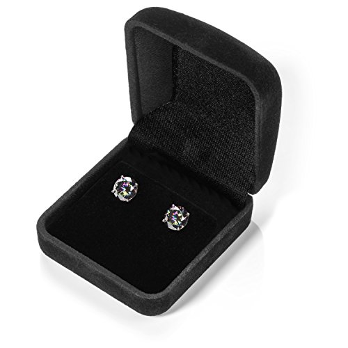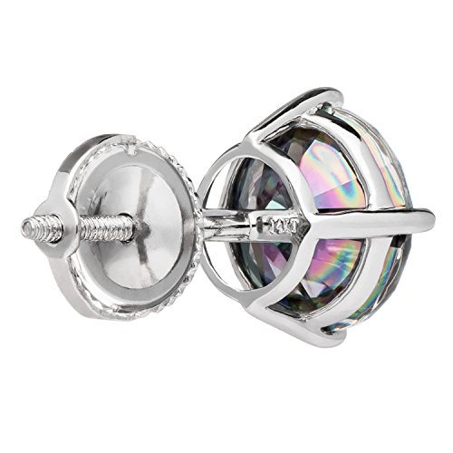 A gorgeous pair of stud earrings featuring two dazzling round cut Rainbow Mystic cubic zirconia (CZ) stones totaling 4.0 carats (2.0 carats each earring). Top Quality Grade AAAAA CZs reflect every color of the rainbow, and are a perfectly versatile compliment to any outfit. They are professionally set in a heavy basket setting with secure screw-back fastenings, all crafted from solid 14K white gold. This beautiful pair of earrings is elegantly presented in a deluxe black velvet box. They will make a perfect gift for a loved one, or will make a great addition to your gold jewelry collection.