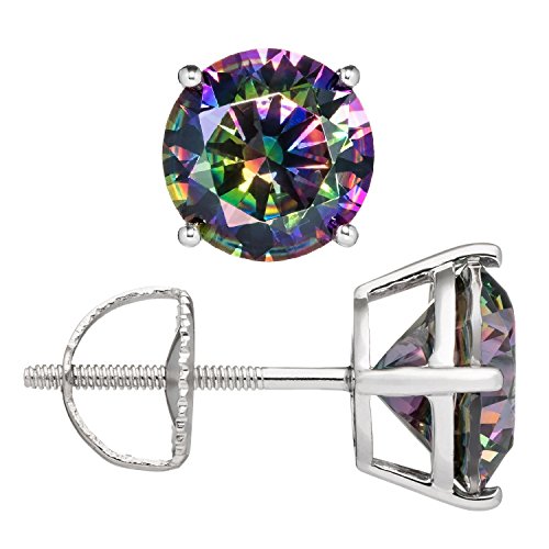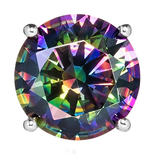 Gorgeous Brilliant Round Cut Rainbow Mystic Cubic Zirconia (CZ) 4.0 cttw (2.0 ct Each Earring) 8.0 mm. Top Quality Grade AAAAA Cubic Zirconia