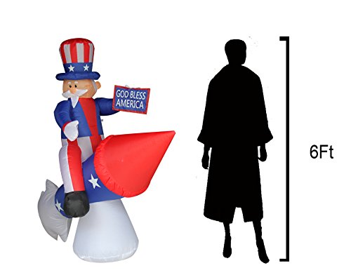 -. Title : SEASONBLOW 6 Ft Patriotic Independence Day/Flag Day Inflatable Uncle Sam on Rocket Decorations Home Yard Outdoor Indoor 4th of July Decoration