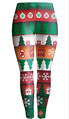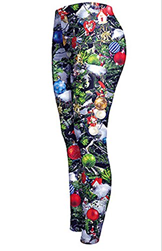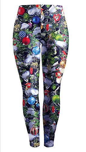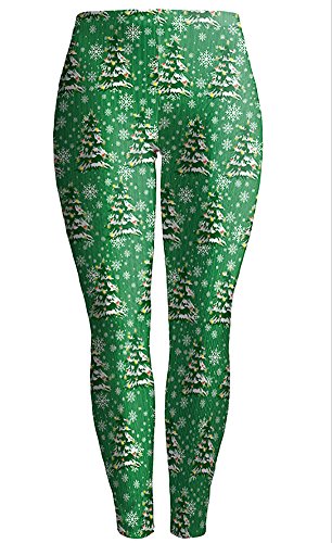 Sister Amy Women's High Waist Holiday Clothing Printed The Christmas Tree Ankle Elastic Tights Legging L