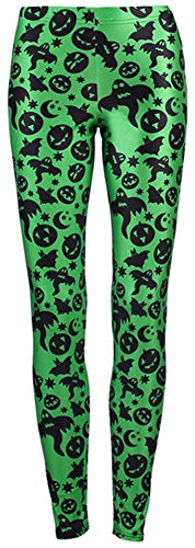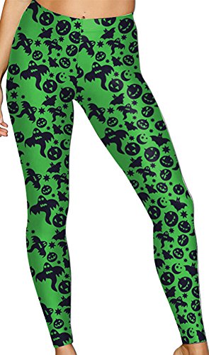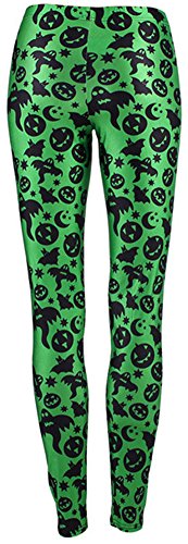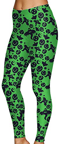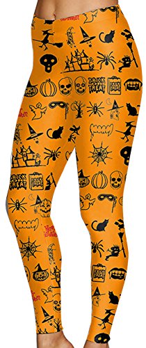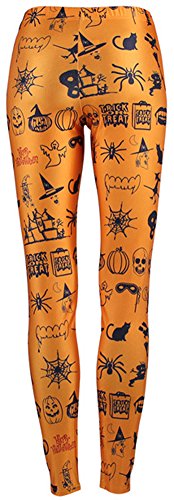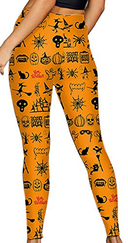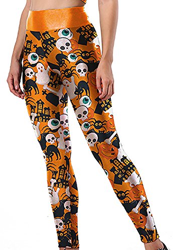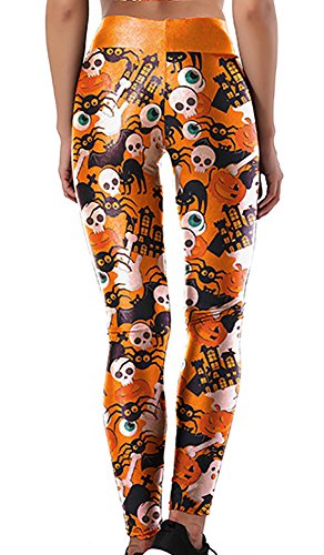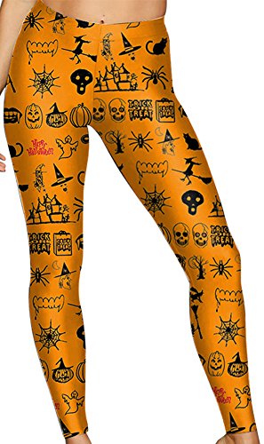 Sister Amy Women's Halloween Pumpkin Skulls Printed Ankle Elastic Tights Legging Halloween L