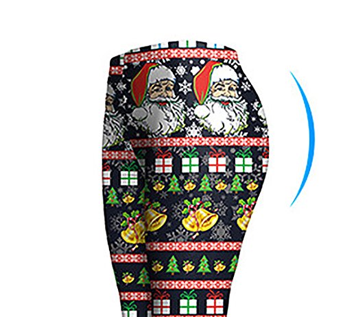 Sister Amy Women's High Waist Holiday Clothing Printed Santa Claus Ankle Elastic Tights Legging L