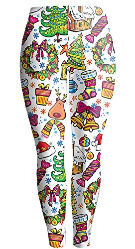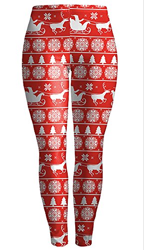Sister Amy Women's High Waist Holiday Clothing Printed The Christmas Ankle Elastic Tights Legging L