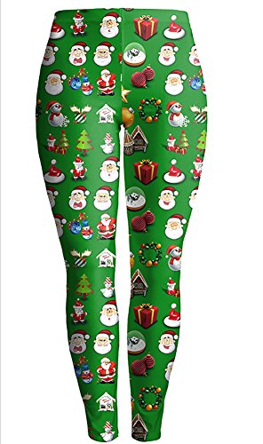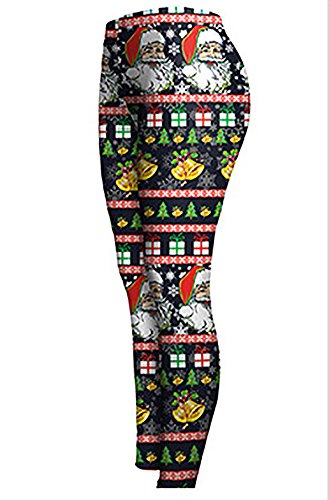 Sister Amy Women's High Waist Holiday Clothing Printed Santa Claus Ankle Elastic Tights Legging M