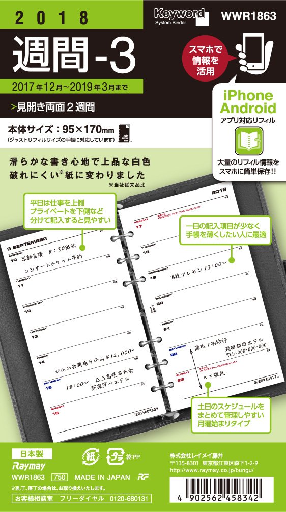 Product name: Ray Mei Fui keyword notebook refill beginning December 2018 Weekly Bible 2 weeks WWR 1863