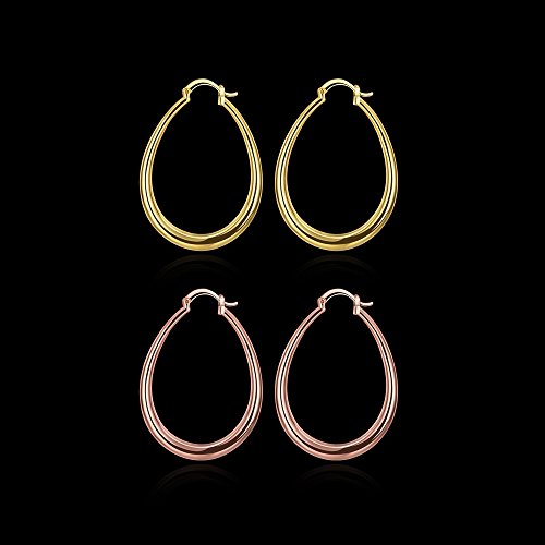 The Oval hoop earrings are plated in 14K gold & rose gold, size in 44mm*34mm, Top Clip Closure, very shiny and durable.