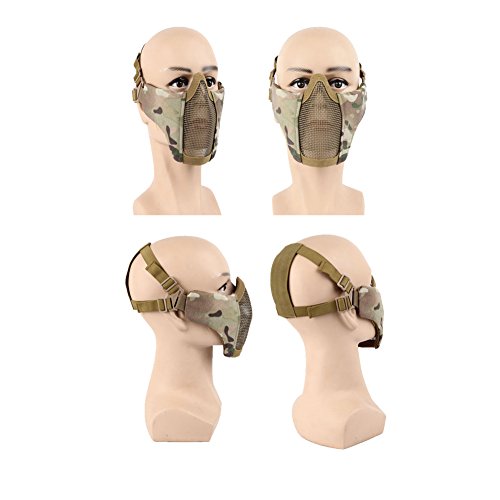 -. Binding : Misc. -. Brand : AegisTac -. Feature : Fully adjustable. The side strap with adjust belt ensure the fit. Can easily be formed to fit most faces / Combo with a full sealed eye goggle (Not Included) to achieve full face protection required by fields / Superb air ventilation prevents fatigue, fogging, and sweat from building up / Superb protection provided by steel wire high gauge wire mesh. / Does not muffle your voice, allowing you to be heard clearly by your teammates -. IsAutographed : 0 -. IsMemorabilia : 0 -. Label : AegisTac -. Manufacturer : AegisTac -. MPN : AT-MZ03 -. PartNumber : AT-MZ03 -. ProductGroup : Sports -. ProductTypeName : SPORTING_GOODS -. Publisher : AegisTac -. Studio : AegisTac -. Title : AegisTac Half Face Lower Mask Foldable Mesh Adjustable Tactical Metal Steel Mask for Airsoft