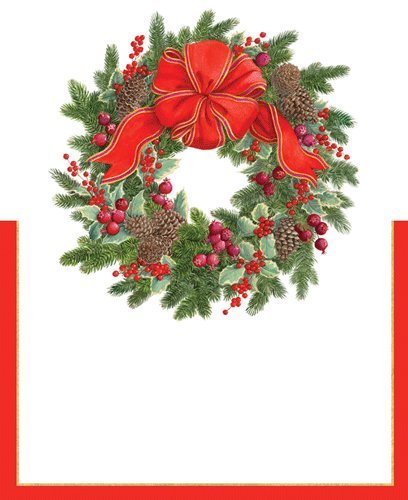 Set of 8 Placecards die cut Evergreen Wreath design for party table decorations.