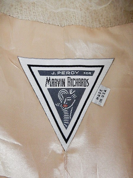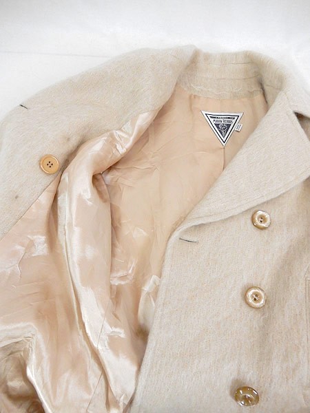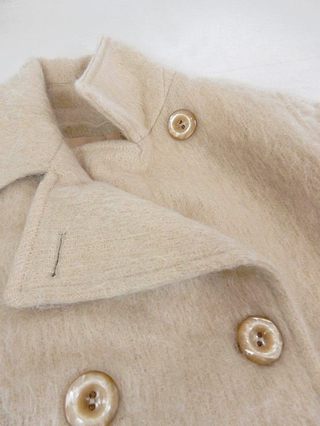 Ladies ブランドJ.PERCY MARVIN RICHARDS カラーオフホワイト メール便不可 コンディション★★★ 素材モヘア・ナイロン 表記サイズ4 スタッフコメントモヘアウールが使われた、Pコートタイプの、 もこもこ、ふわふわな可愛い1点です◎ 替えボタンも付いています。 実寸サイズ 着丈 80 cm 身幅 52 cm 肩幅 40.5 cm 袖丈 62 cm ※ウエスト・ヒップ以外は平置き採寸