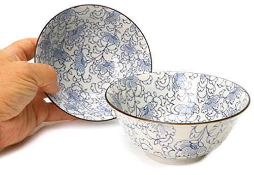 [Product Information]- SET OF TWO - Soup or Noodle bowls that work well for many other dishes. Elegant Indigo Blue and White floral design
