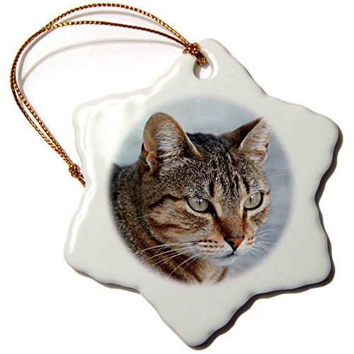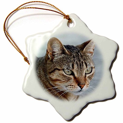 Taiche Acrylic Art Tabby Cat Portrait Snowflake Porcelain Ornament, 3-Inch