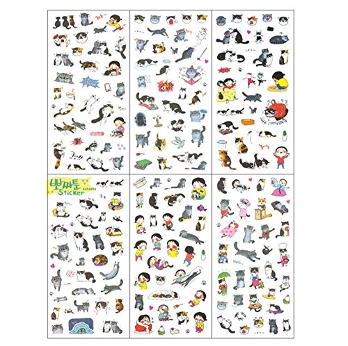 Schoolsupplies 6 Sheets Super Cute Cat Stickers for DIY Albums Diary Decoration Cartoon Scrapbooking Kawaii School Office Stationery