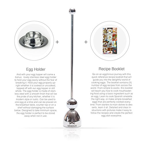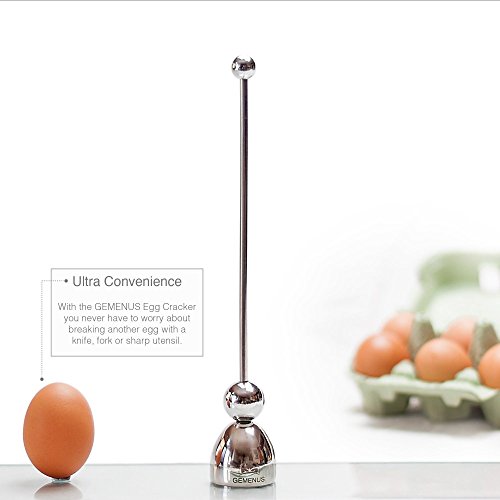 -. Binding : Kitchen -. Brand : Gemenus -. Color : Silver -. EAN : 0820103130493 -. Feature : Ultra Convenience - With the GEMENUS Egg Cracker you never have to worry about breaking another egg with a knife, fork or sharp utensil. Now you can open any egg with precision and avoid the hassle of broken shells falling on the floor or into your food / Versatile Design - The unique and highly versatile design allows you to break soft and hard eggs with ease. It doesn't matter what dish you plan to prepare, you can open any egg without the extra effort. / Highly Durable - The tough, durable design will outlast any other egg topper so you don't have to replace this kitchen tool often. / Eliminate Messy Cooking - No more broken egg shells or wasting perfectly good eggs every again. This super convenient egg cracker will break every egg with precision to avoid a messy cleanup during cooking. / Easy To Clean - The stainless steel egg cracker is ultra easy to clean so you don't have to waste time washing extra dishes and it will be ready to use when you need it again. -. Label : Gemenus -. Manufacturer : Gemenus -. Model : DE450 -. MPN : AZ797 -. PackageQuantity : 1 -. PartNumber : AZ797 -. ProductGroup : Kitchen -. ProductTypeName : KITCHEN -. Publisher : Gemenus -. Studio : Gemenus -. Title : Best Kitchen Gadget- Egg Cracker By Gemenus | Egg Topper & Egg Shell Remover- Conveniently and Precisely Cracks Open Eggs Without Any Hassle or Mess- Great Kitchen Accessories -. UPC : 820103130493