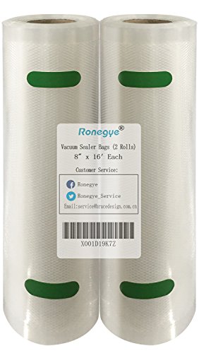 Ronegye Upgraded Vacuum Sealer Bags Rolls Reusable Sous Vide Bags for Food Saver with Both-Sides Embossed in Commercial Grade FDA Approved BPA Free 2 Rolls of 8" x 16' Each, Clear