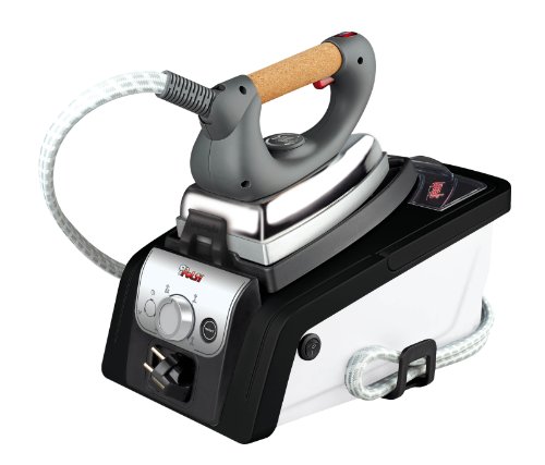 Professionelle Bugelstation mit korkisoliertem Griff. Kontinuierlicher Dampf durch standige Nachfullbarkeit des Wassers. Maximaler Dampfdruck: 5 bar. Dampfausstoss bis zu 150 gr/min. 4-stufige Dampfregulierung.