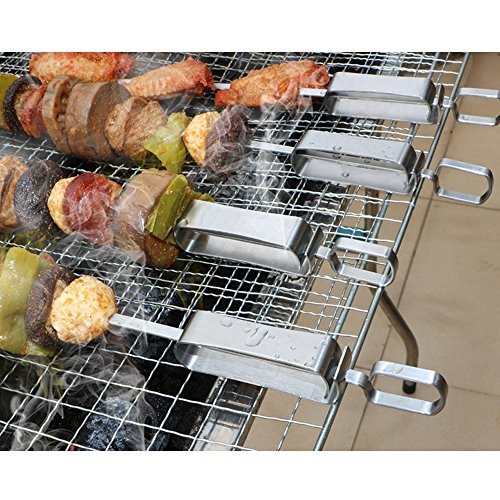QUICK RELEASE - We added a flexible pusher on the place of handle to quick slide your food off from skewers in one fell swoop. You will never worry the roast food will stuck or stick on the skewers anymore.