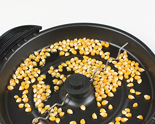 Motorized stirring rod evenly distributes kernels and reverses when needed for better popping performance