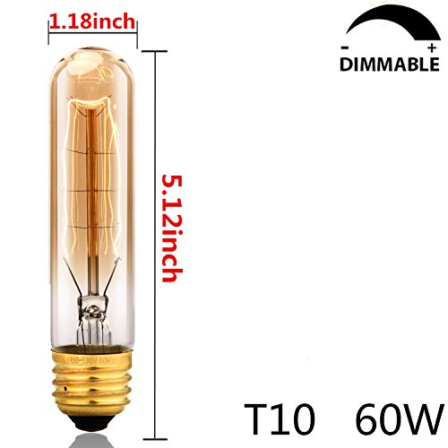 - ❤❤T10 Edison bulb, Bulb size: diameter:30mm,height:125mm, Classic Tubular Nostalgic clear glass,110-130v 60W, E26/E27 the US Standard Screw copper lamp holder.