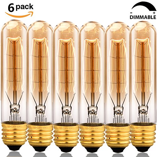 60W Edison Bulb,SerBion Incandescent Vintage Antique Light Bulb, T10 Tubular Filament Dimmable Bulb ,E26/E27- 110v- 370 Lumens ,6-pack