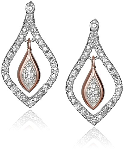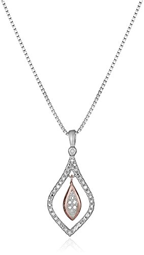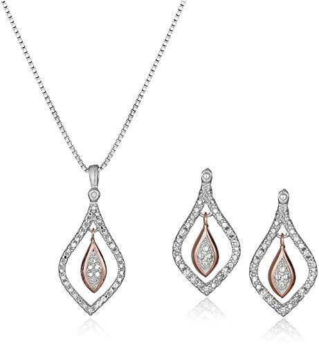 Two-piece pendant necklace and stud earrings set featuring diamond-inset open teardrops with 18k rose gold over silver teardrop dangle at center