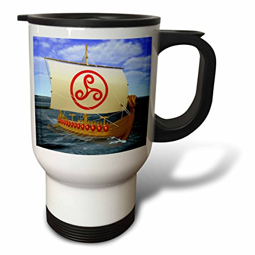3dRose tm_180528_1 A Viking Boat Sailing on The Ocean with Sail Unfurled Stainless Steel Travel Mug, 14-Ounce