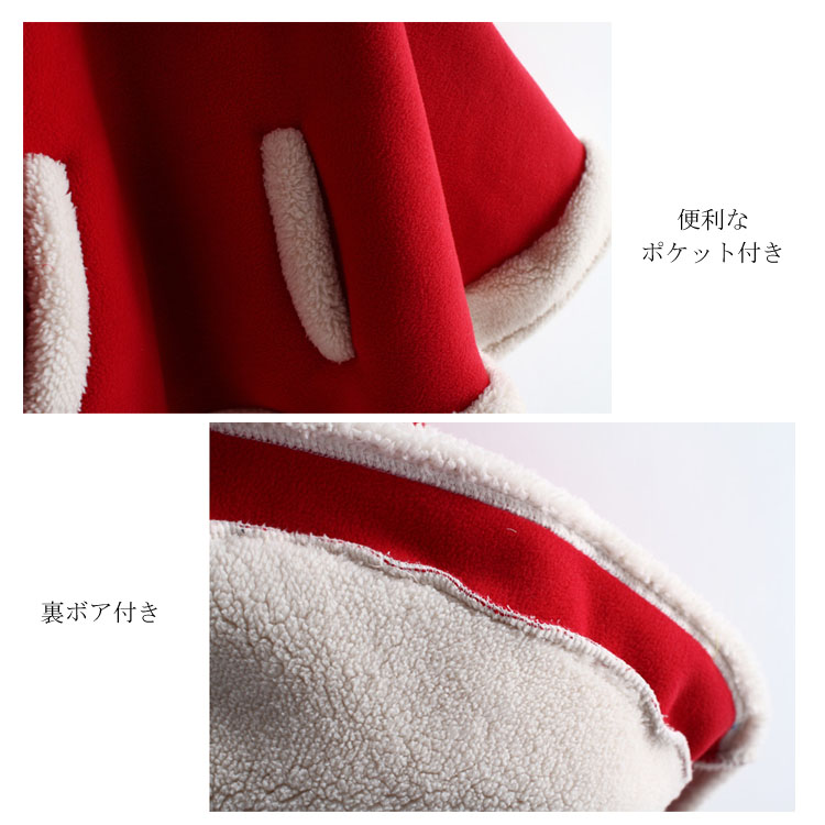 | ふんわり可愛らしいシルエットのマントです。肌触りのよい素材で程よいボリューム感がとっても可愛いです。寒い季節にピッタリです。お出かけにおススメです。 | |