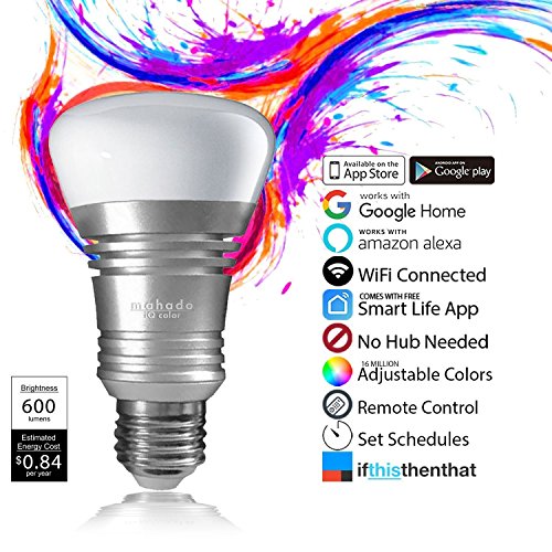 Color WiFi LED Smart Light Bulb | 7w Smart LED Bulbs Work with Alexa, Google Assistant, and IFTTT | Dimmable WiFi Smart Light | No Hub Required for Colored Alexa Smart Bulb | by Mahado (2 Pack 7w)