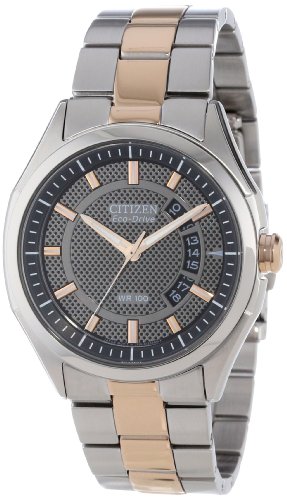 -. Binding : Watch -. Brand : Citizen -. Color : black -. Department : mens -. EAN : 0013205099311 -. Feature : Eco-drive is fueled by light so it never needs a battery / Two tone rose gold/silver tone stainless steel case and bracelet with rose gold tone accents / Three hand with date / ProP.R.Ietary chroma finishing / Water resistant to 330 feet (100 M): suitable for snorkeling, as well as swimming, but not diving -. Label : Citizen -. Manufacturer : Citizen -. Model : AW1146-55H -. MPN : AW1146-55H -. PackageQuantity : 1 -. PartNumber : AW1146-55H -. ProductGroup : Watch -. ProductTypeName : WATCH -. Publisher : Citizen -. ReleaseDate : 2012-10-01 -. Studio : Citizen -. Title : Citizen Men's Drive from Citizen Eco-Drive HTM 2.0 Two Tone Rose Gold Watch -. UPC : 013205099311