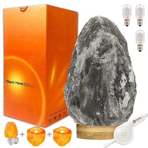 Maymii.Home-Omonic VERY RARE (8-13lbs) Grey Gray White Himalayan Salt Lamp Lights, Salt Table Lamp Bamboo Base Touch Dimmer Switch Control With 1 Salt Night Light, Set of 2 Pack Salt Candle Holders