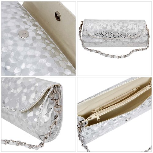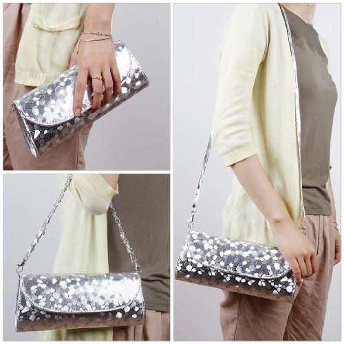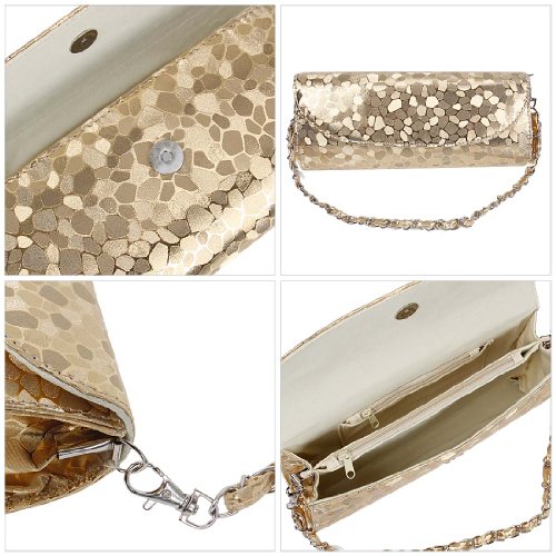 -. Brand : b.m.c -. ClothingSize : Medium -. Department : womens -. Feature : COMPACT, YET SPACIOUS this bag has the following dimensions 10 in (L) X 2.25 in (W) X 4.25 in (H) / ULTRA STYLISH EXTERIOR - made up of faux leather with a rock path style pattern and a shiny sheen / FLAWLESS INTERIOR - main compartment features 1 zippered center and 1 zippered side pocket / VERSATILE DESIGN - removable shoulder chain has a 23 in. drop. Removable handle chain drops 7.5 in. / OTHER DETAILS - Style: Envelope. Closure: Magnetic Clasp. -. Label : Bundle Monster -. Manufacturer : Bundle Monster -. NumberOfItems : 1 -. ProductGroup : Shoes -. ProductTypeName : HANDBAG -. Publisher : Bundle Monster -. Size : Medium -. Studio : Bundle Monster -. Title : BMC PU Leather 2 Zipper Pocket Magnetic Snap Chain Shoulder Strap Evening Clutch