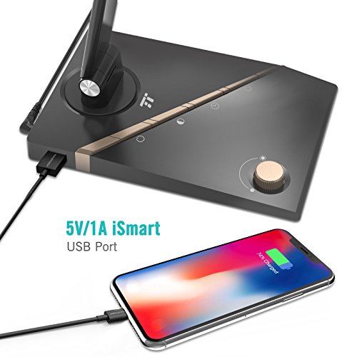 Integrated USB Port: Charge your phone right there where you need it via 5V /1A charging port that is featured on the desk lamp