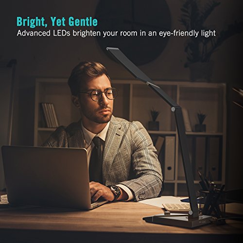 TaoTronics LED Desk Lamp, Office Lamp with 1000 Lux Bright Yet Eye-Caring LED Panel and 5 Color Modes, Integrated USB Port, 1-Hour Auto-Timer and Nightlight Function