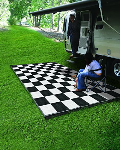 The Camco Black and White Checkered Outdoor Mat is reversible, mold and mildew resistant, lightweight and easy to clean. Perfect for putting by your RV, campsite or patio. Folds easily and compactly for storage.Feature